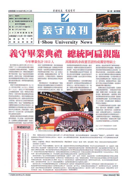 Copyright © 2009 義守大學 版權所有 高雄市大樹區學城路一段一號