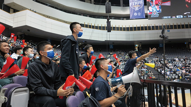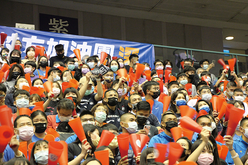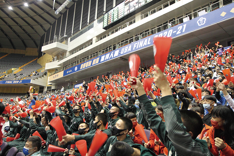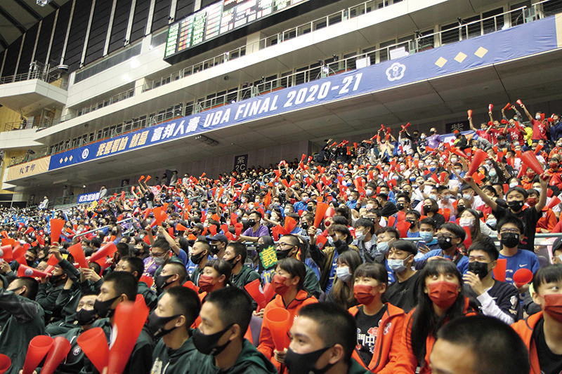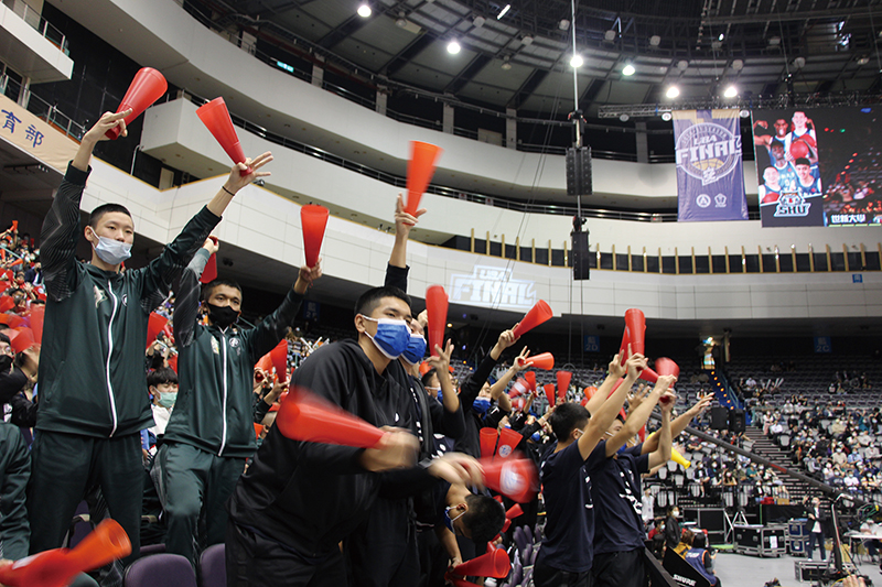 2021義大男籃UBA台北小巨蛋決賽,場內加油團聚精會神,反應熱烈。