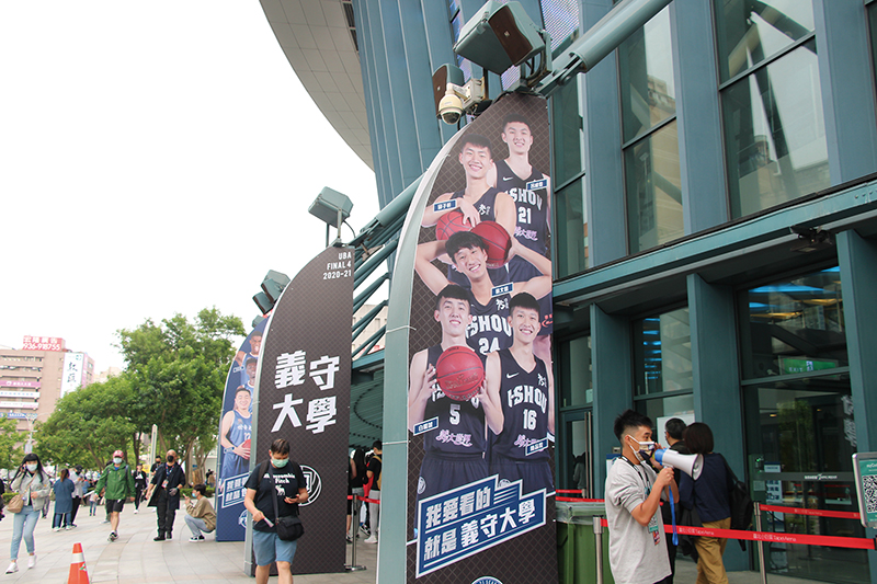 2021義大男籃UBA台北小巨蛋決賽,場外本校選手輸出布置樣。